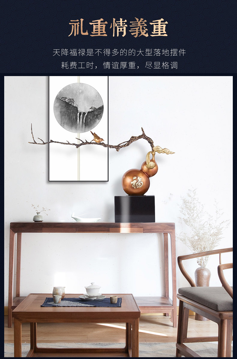 葫芦落地的角度仿佛带了福祉从天而降,并与祥云、喜鹊、如意组成一副祥瑞图。