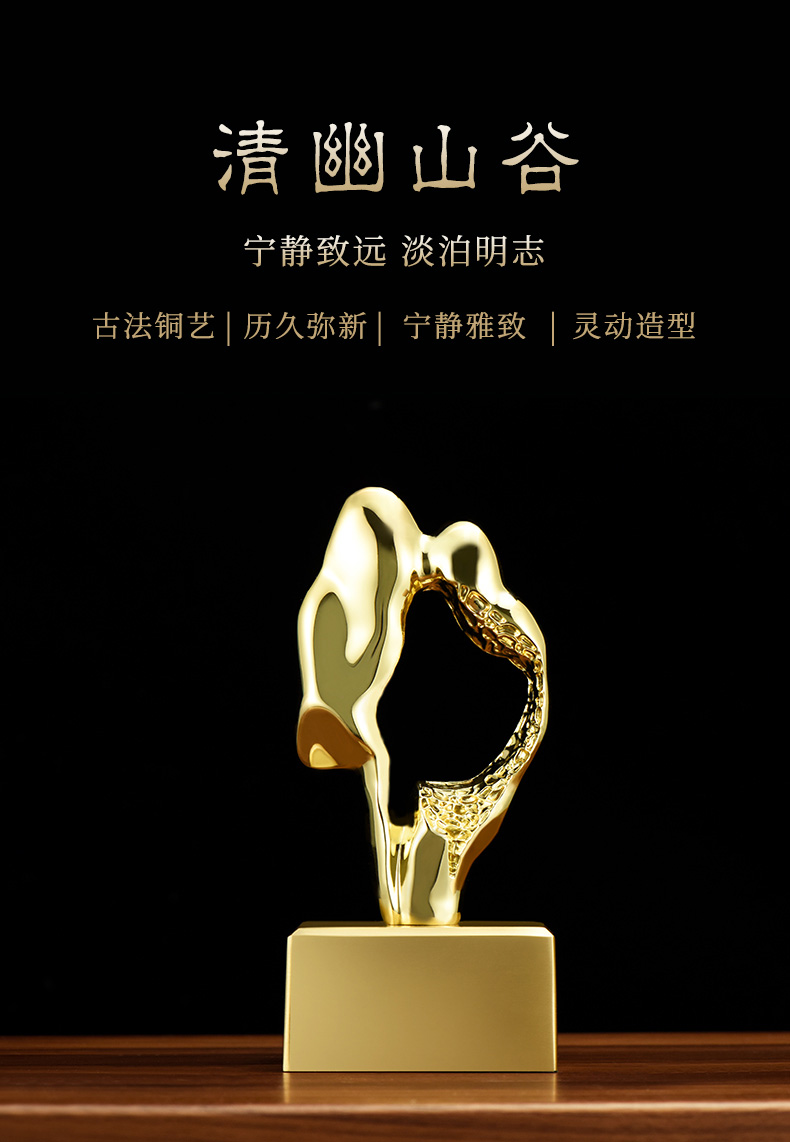 清幽山谷采用精铜材质打造,经过1500℃以上高温浇铸,表面精细打磨,展示铜本色的古朴,铜本色对工艺的把控和要求更为严苛。