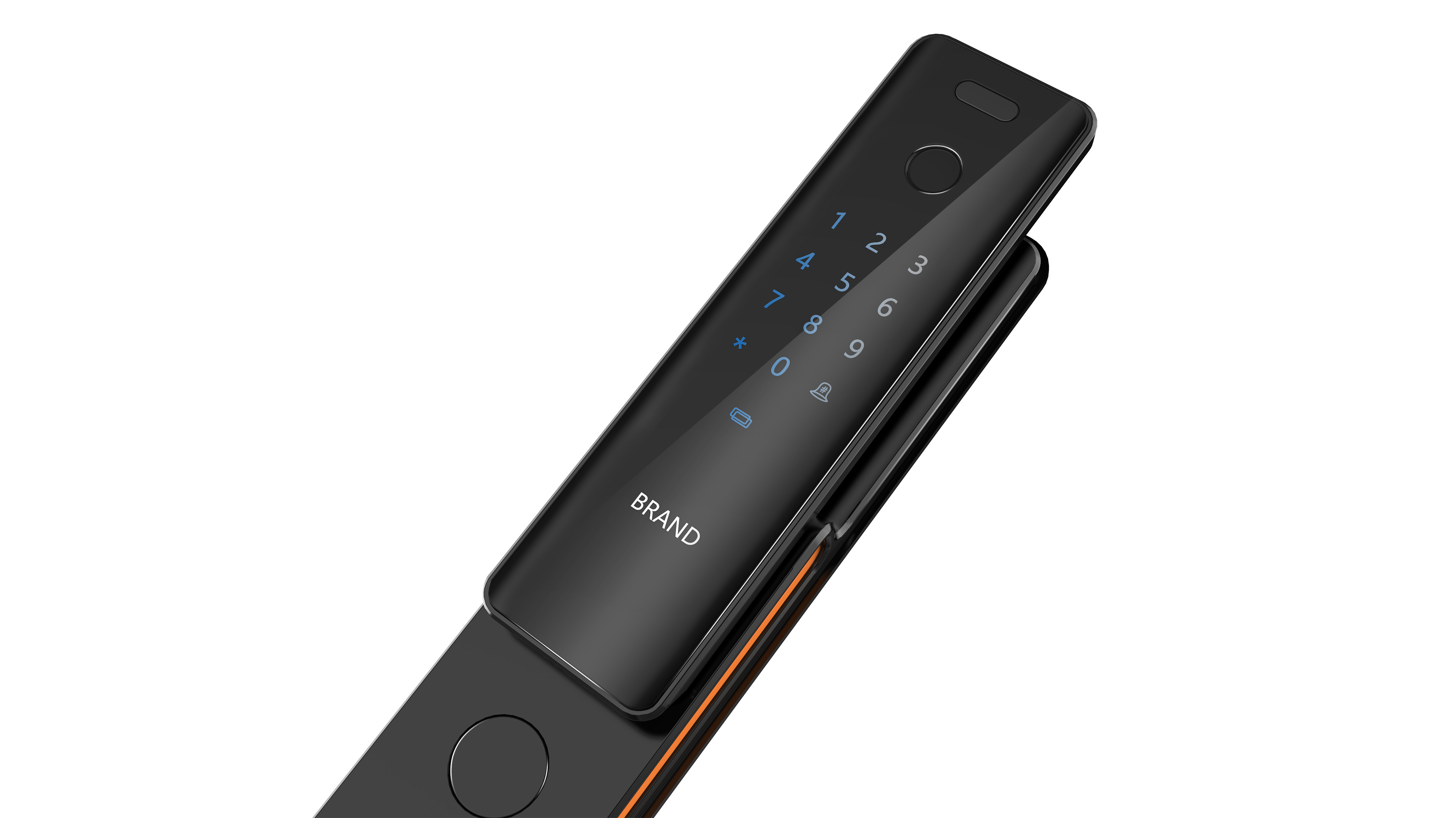 不同于其他智能电子锁的设计方向,这是一款主打轻薄极简的产品,兼具几何拼接的设计元素。
