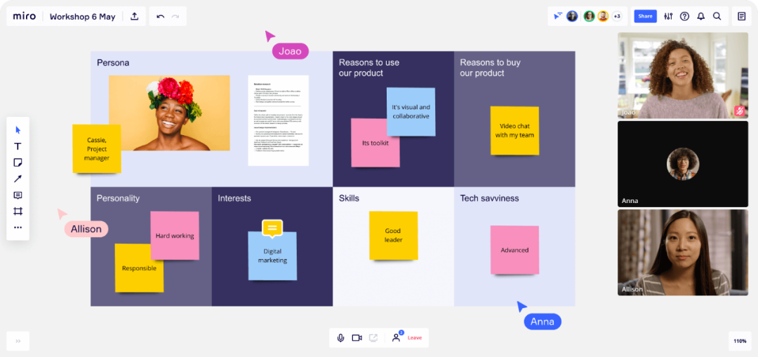 除了功能场景全面的一体化的协同办公平台以外,为了满足一些轻量场景的需要,协同产品的赛道在进一步的细分。例如出现了基于轻量协作的白板产品 Miro、Mural等以白板为载体的在线协作工具,快速且易于使用。用户可以自由选择与团队合作的方式,应用场景包括数字头脑风暴、记录会议、研究和设计、敏捷工作流程以及做一些绘图和图解等,实现同步和异步的协作效率。